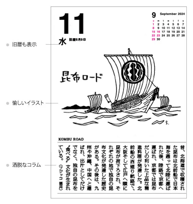 ・ カレンダーとしてだけでなく、使用後に再度読みものとしてもお楽しみ